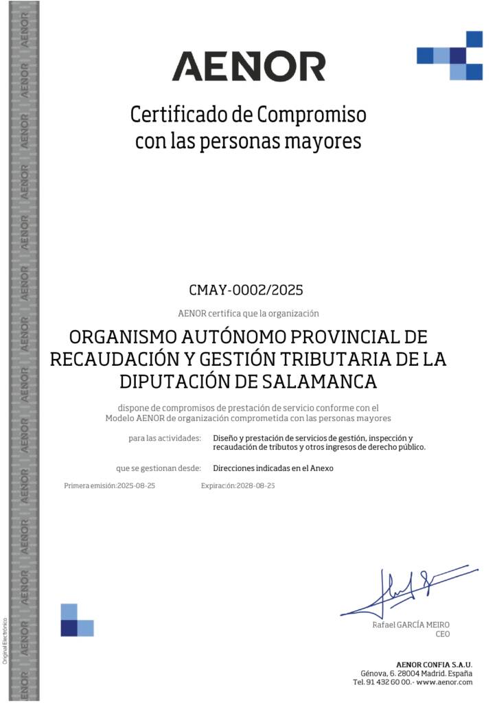 Todo esto configura un modelo pionero en el ámbito de la gestión tributaria local, que ahora AENOR reconoce y certifica.